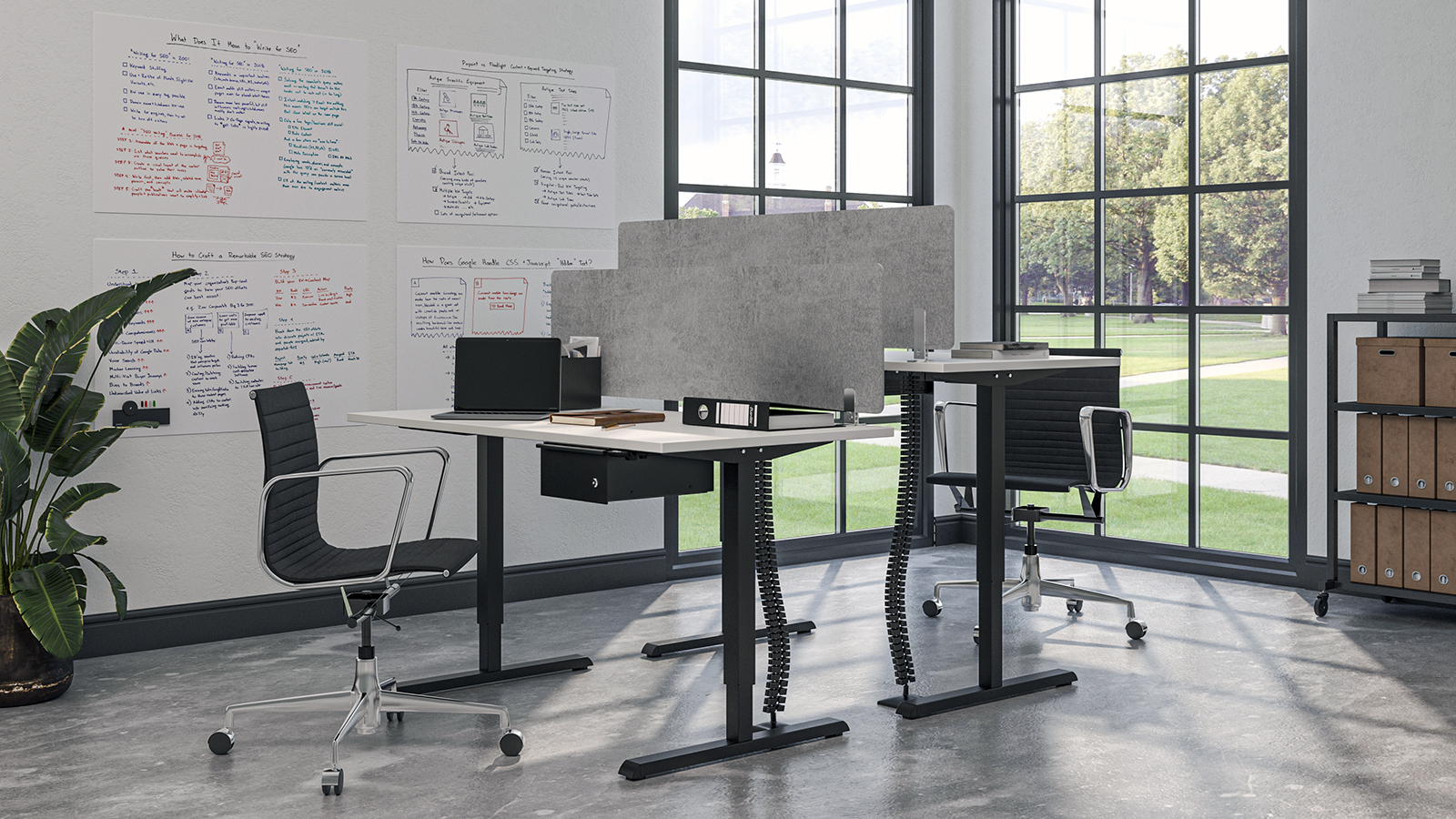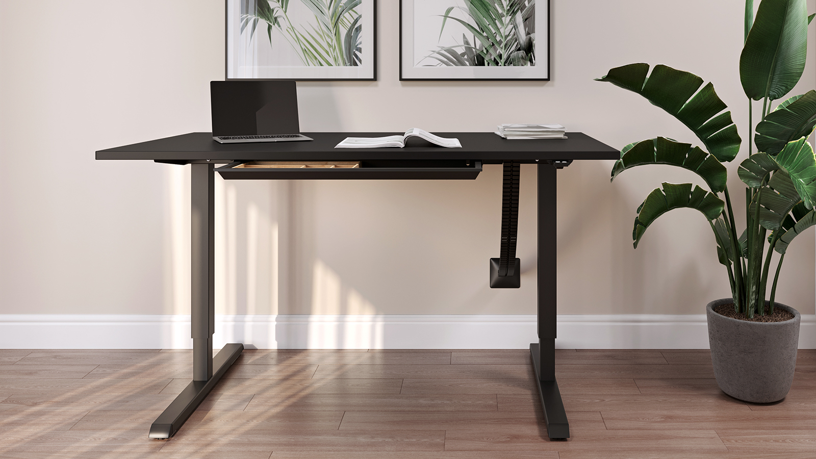 The Steelforce 300 table frame is equipped with an electric drive that enables simple and stepless height adjustment. At the touch of a button, you can set the optimum working height and switch between sitting and standing positions. This prevents tension and back pain and improves posture, which is particularly beneficial when working long hours.